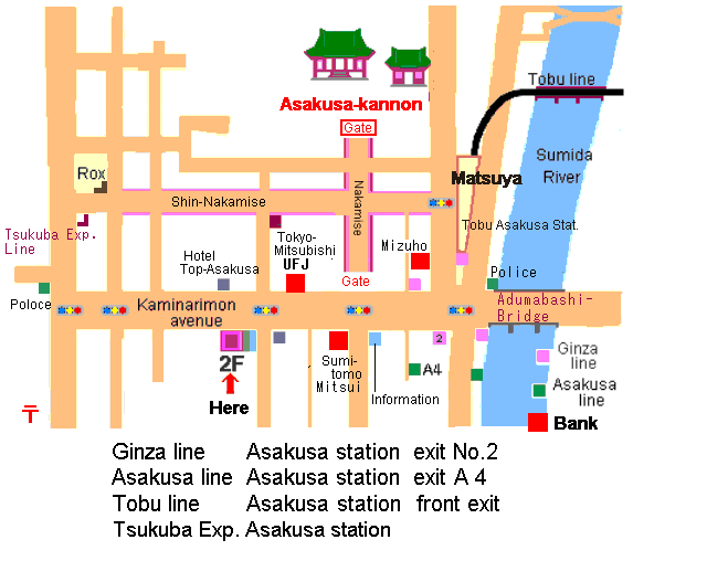 | ASAKUSA MOKEI is 5 minutes walk from Asakusa Station. |